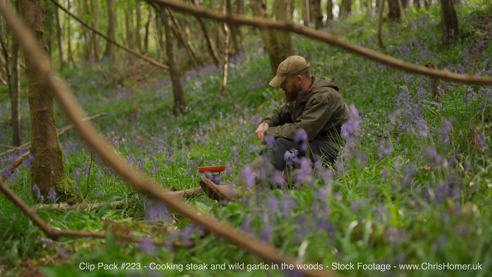 The highlight, for me, was the cooking itself. You’ll see me cooking steak and wild garlic in a frying pan with butter on a gas stove. It’s a scene I can only describe as "unreal," truly embodying the good life, surrounded by bluebells and majestic woodland. This amazing set of stock footage provides perfectly idyllic woodland scenes with a gorgeous woodland background.