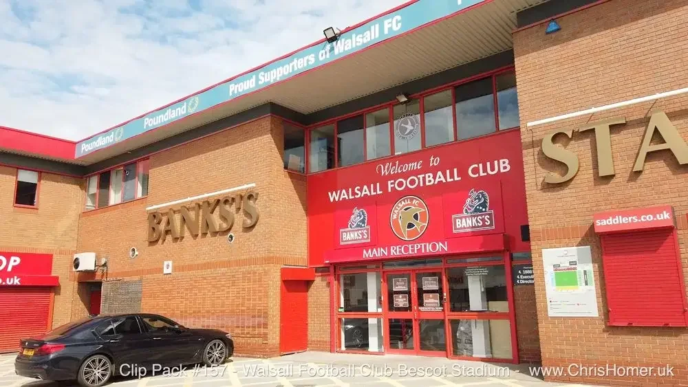 Bescot Stadium, opened in 1990, is a modern all-seater stadium that has served as Walsall FC's home for over three decades. With a capacity of over 11,000, it provides a comfortable and welcoming environment for fans. The stadium's development has been a significant part of the club's growth, reflecting their ambition to compete at a higher level. My 4K gimbal clips capture the stadium's exterior, offering clean and professional establishing shots suitable for broadcast television, news reports, and documentary segments.