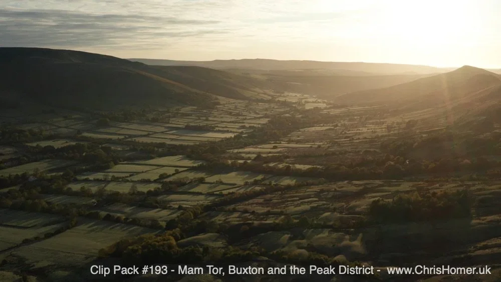 Mam Tor, Buxton and the Peak District Stock Footage (Clip Pack #193): This pack provides a fantastic array of general Peak District scenery, with extensive coverage around the iconic Mam Tor ("The Shivering Mountain") and the charming spa town of Buxton. You’ll find varied landscapes, walking trails, and classic British countryside, perfect for any project needing versatile, beautiful Peak District footage beyond the Kinder Scout area.