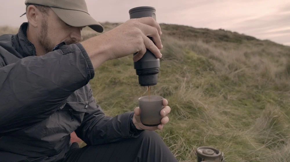 This was the cue for the drone. I quickly launched it (Drone - https://amzn.to/4gB19de) for a game of 'Chase the Cloud', capturing sweeping aerial views of the mist and the sunlight striking the ground. The morning was sealed with the essential coffee ritual, courtesy of the OutIn Nano Portable Espresso Maker (OutIn Nano Portable Espresso Maker - https://amzn.to/46NNkUa), providing warmth before the pack-down.