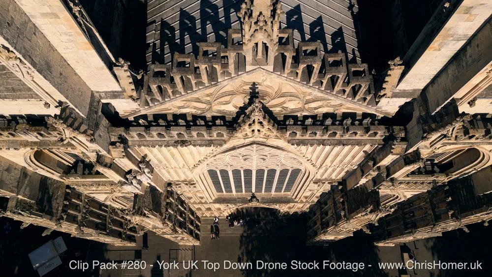 Clip Pack #280 - York UK Top Down Drone Stock Footage For £1995, this pack delivers 39 minutes 2 seconds of 4K UHD top-down drone stock footage across 75 clips (15.49GB). Top-down views are my trademark move, and here you'll find the best of that style, honed after years of drone filming in 35 countries, delivering world-class cinematic brilliance that will make your project truly unique. The footage provides magnificent bird's-eye views over the city of York, capturing iconic landmarks such as Clifford's Tower, York Minster, and the River Ouse. Clifford's Tower is a historic keep that is almost all that remains of York Castle, originally built by William the Conqueror. York Minster, one of the largest Gothic cathedrals in Northern Europe, dominates the city's skyline. The River Ouse has been a vital waterway for York since Roman times.