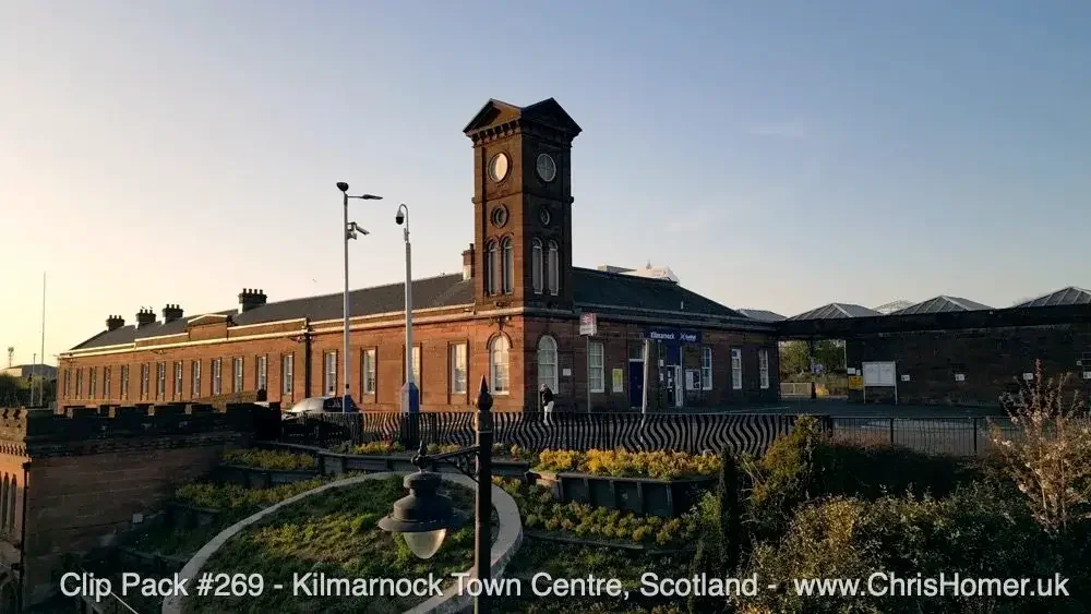 Kilmarnock, Scotland: Aerial perspectives of The BBSP Stadium Rugby Park and Kilmarnock Town Centre, including the viaduct and railway station.
