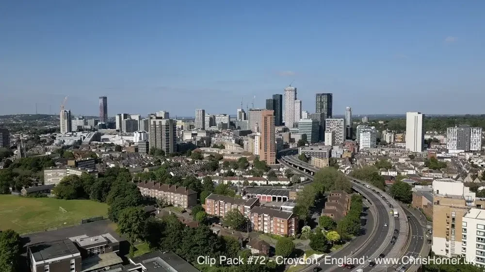 Perfect for documentaries, news segments, corporate videos, and creative projects requiring a clear, high-quality aerial perspective of Croydon.