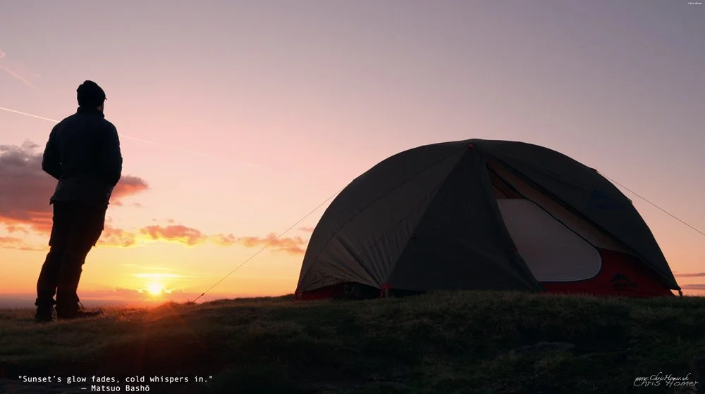 It immediately presented a headache. A view overlooking a city from a wild camp spot is rare, cinematic, and far more commercially valuable for stock footage. However, I hadn't planned for it, and the spot was directly into the strengthening wind. I spent a good half-hour debating the shot.