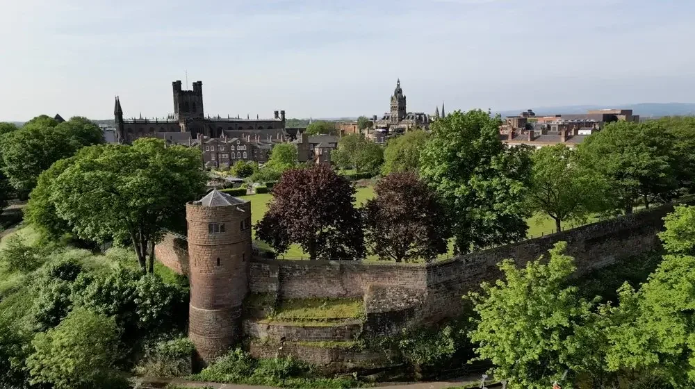 Chester’s a time capsule, vivid now. Clip Pack #31 – Chester City Centre (£5995) offers drone orbits of the Cathedral and gimbal dances past the Eastgate Clock. Clip Pack #30 – Chester Racecourse (£900) frames the River Dee in motion—racecourse elegance, no crowds needed. It’s heritage with a pulse, ripe for docs or dramas.