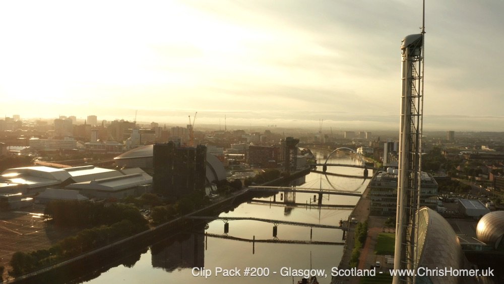 Sunrise Scenes: Beautiful footage captured during sunrise, showing the wider Glasgow area bathed in stunning morning light.