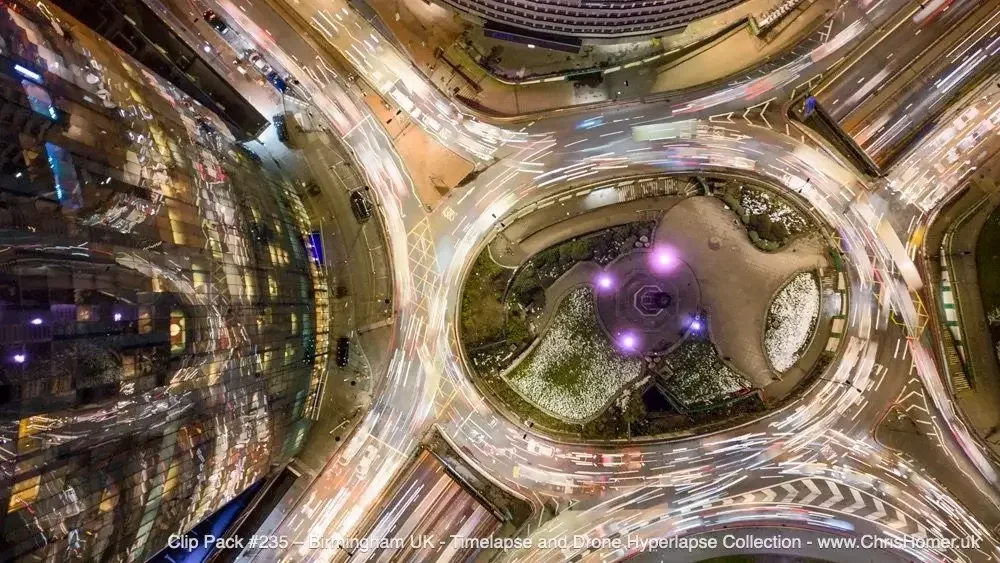 This stunning day-to-night sequence is a highlight of Clip Pack #235, a powerhouse collection dedicated exclusively to 46 cinematic timelapse and drone hyperlapse sequences of Birmingham.