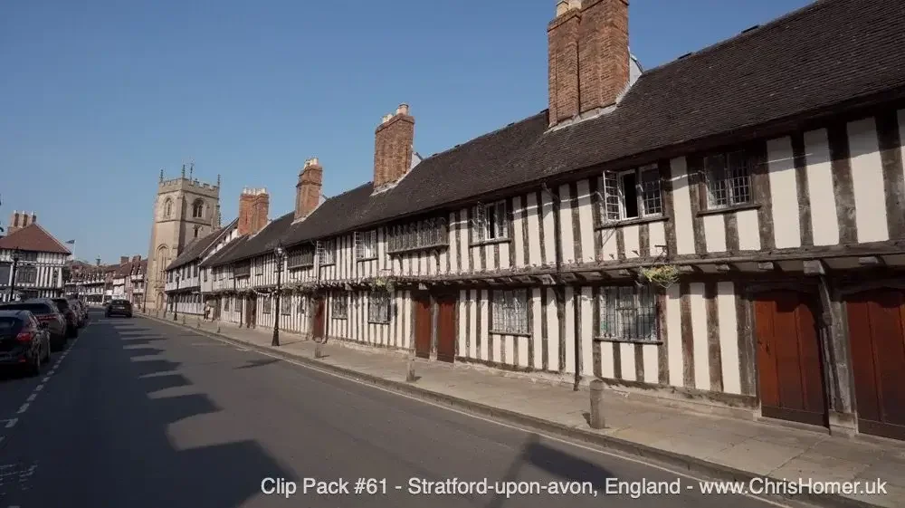 Warwick is closely associated with Stratford-upon-Avon, Shakespeare's birthplace. Clip Pack #61 offers a stunning collection of 56 high-quality clips (23 minutes 20 seconds, 9.28GB) capturing the charm and history of Stratford. It features a mix of 30 dynamic drone clips and 26 smooth gimbal shots, providing a comprehensive visual tour of this iconic town. Key featured locations include Anne Hathaway's Cottage, Henley Street and Shakespeare's Birthplace, Shakespeare's Schoolroom and Guildhall, and the Royal Shakespeare Theatre. The pack also captures the picturesque River Avon with boating scenes, the historic Clopton Bridge, and atmospheric shots of old streets, tourists, and daily life. It is perfect for documentaries, travel films, and historical productions that require detailed visuals of the wider Warwickshire area.